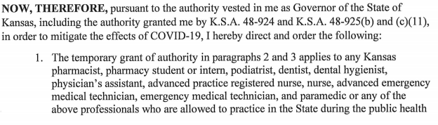 A new executive order from Governor Kelly will allow more healthcare providers to give COVID vaccinations.